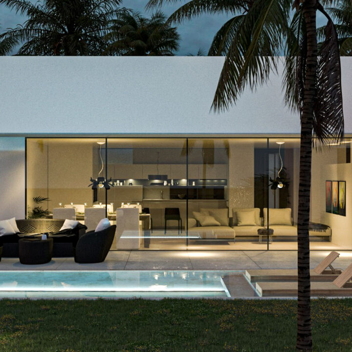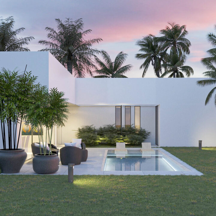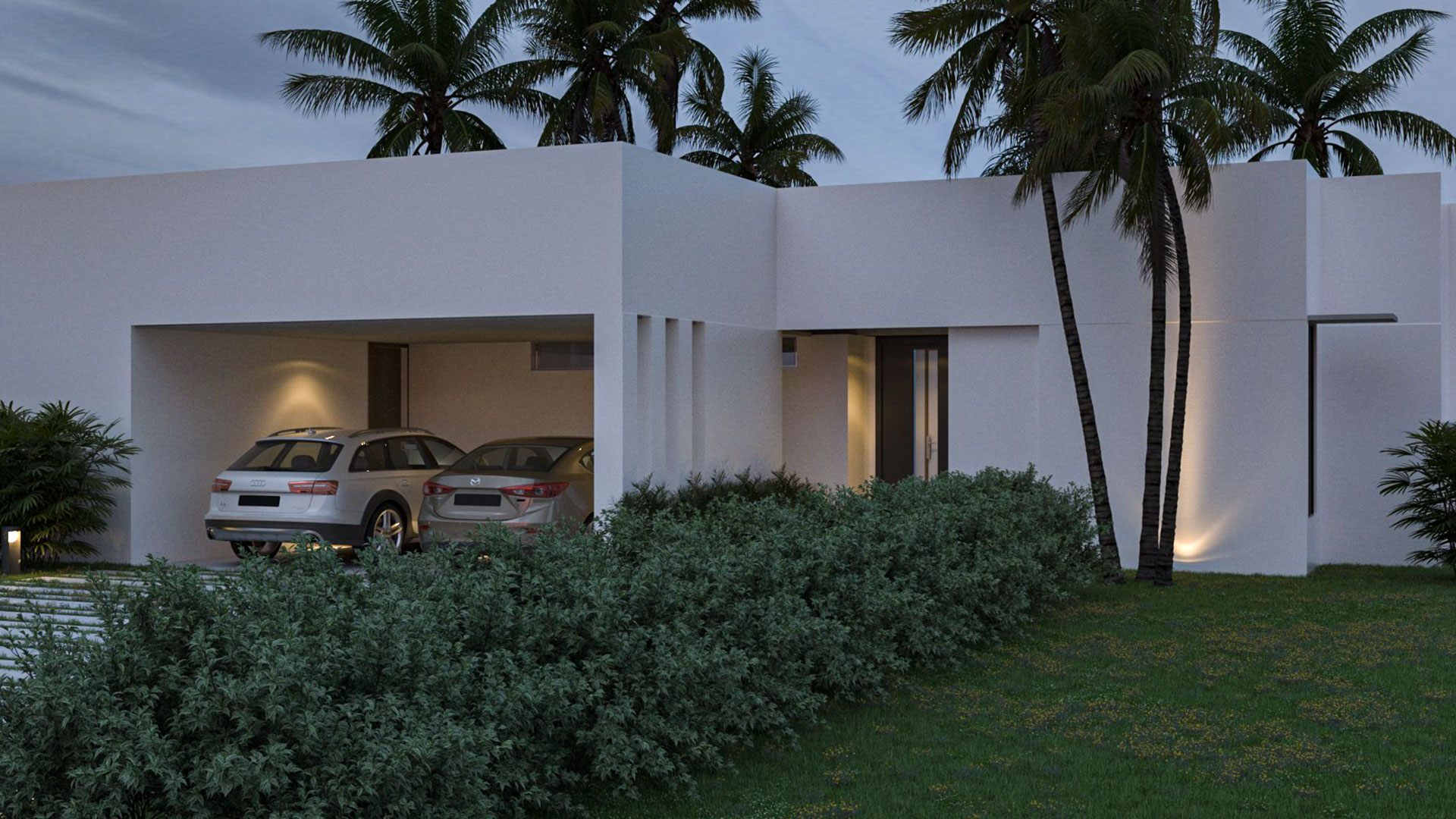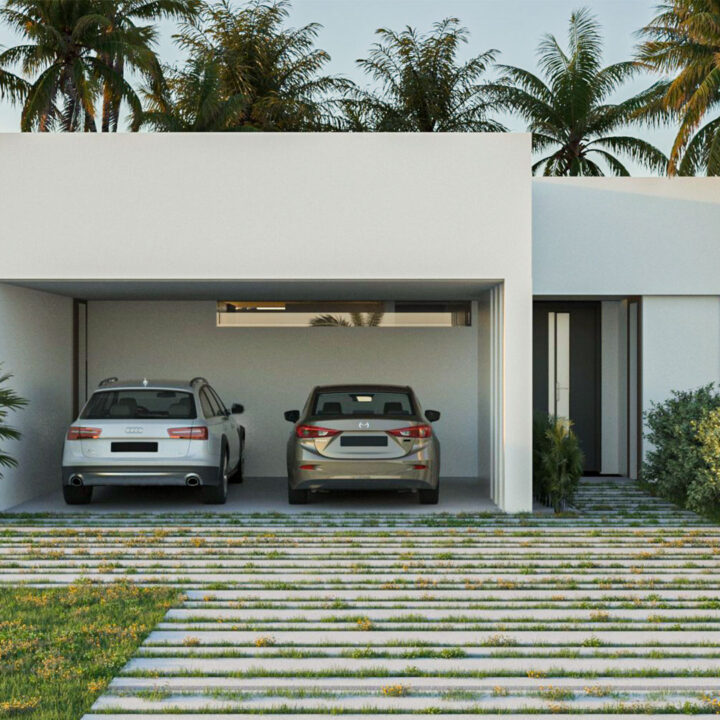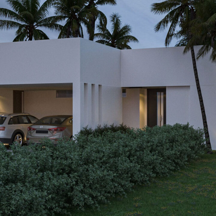 Comenzando por la fachada, optamos por líneas limpias y una paleta de colores neutros para dar una sensación de serenidad y modernidad. Los materiales seleccionados, como el revestimiento de piedra natural o el estuco blanco, proporcionan una base sólida y atemporal que destaca la arquitectura minimalista de la casa.